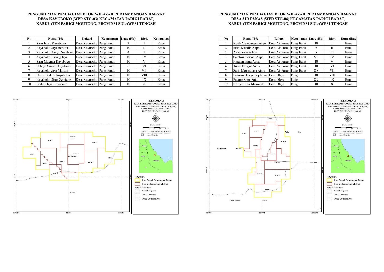 Upaya ini mendesak karena sejumlah koperasi yang telah mengantongi Izin Pertambangan Rakyat (IPR) di Wilayah Pertambangan Rakyat (WPR) Desa Kayuboko dan Air Panas di Kecamatan Parigi Barat akan segera beroperasi.