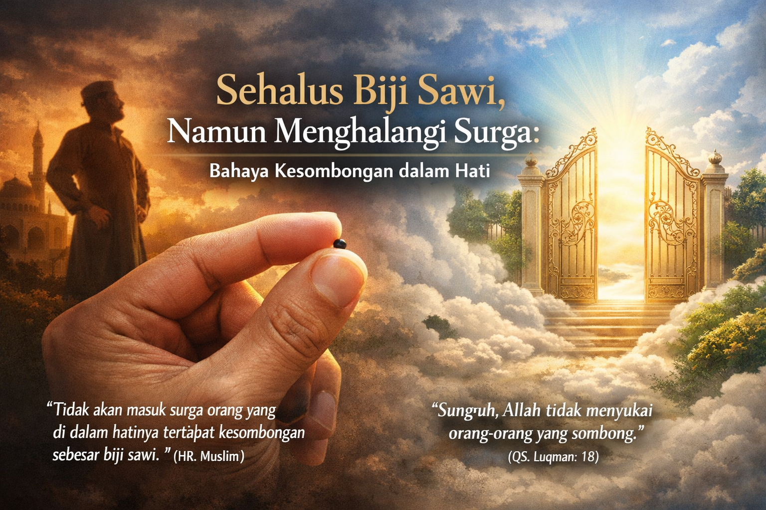 “Tidak akan masuk surga orang yang di dalam hatinya terdapat kesombongan sebesar biji sawi.” (HR. Muslim)